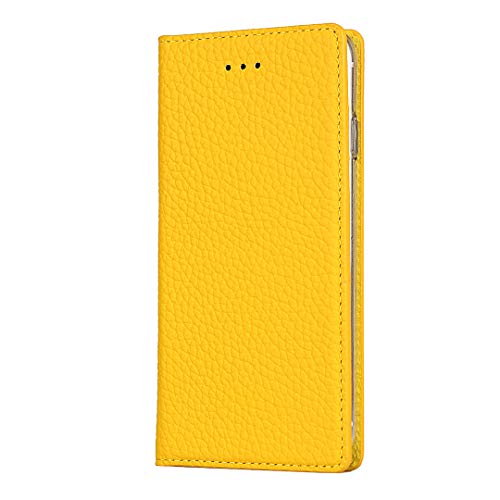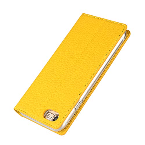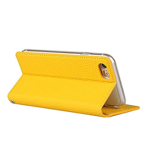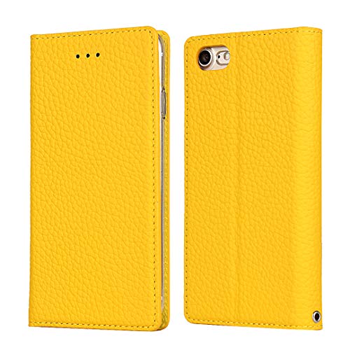 Custodia a portafoglio per iPhone 7/8/SE 2020, Lusso Litchi Grain Genuino Custodia a libro Flip Phone Case con slot per schede Forte chiusura magnetica Cavalletto supporto giallo
