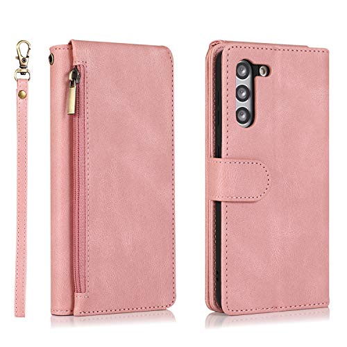 Custodia a portafoglio in pelle per Galaxy S21 5G,con scomparto per carte di credito,cinturino da polso;