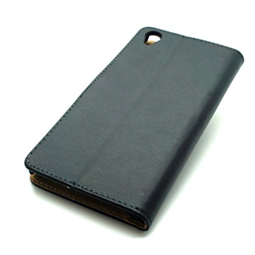 Custodia a portafoglio in pelle premium nera con stand per Sony Xperia Z3