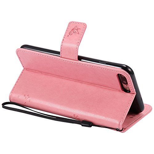 Custodia a portafoglio in pelle sintetica decorata in rilievo con motivo di albero, gatto e farfalla, con supporto per Apple iPhone, Ecopelle PLASTICA, pink, iPhone 7 Plus