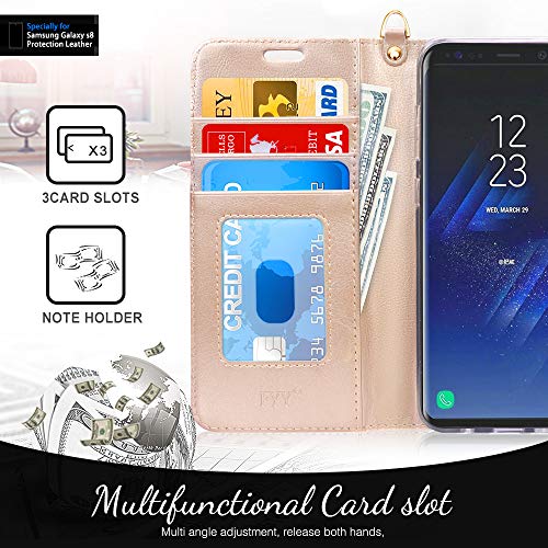 FYY - Custodia a portafoglio per Samsung Galaxy S8, con funzione RFID, realizzata a mano, con supporto, protezione per carte di credito per Samsung Galaxy S8, colore: Oro