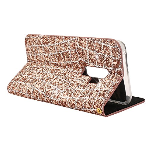 Custodia Portafoglio per Samsung Galaxy S9 Plus,Artfeel Lusso Bling Glitter Moda Griglia Modello PU Pelle Custodia Flip sottile,con Carta Slot Supporto Stand Funzione Chiusura Magnetica Antiurto Paraurti Protettiva Custodia per Samsung Galaxy S9 Plus,Oro rosa