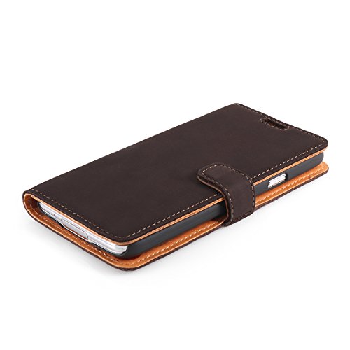 Custodia a portafoglio in vera pelle nabuk colore marrone per Apple iPhone 7 (4,70 pollici)