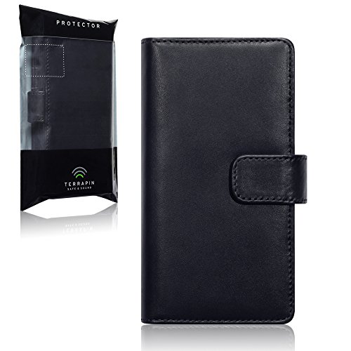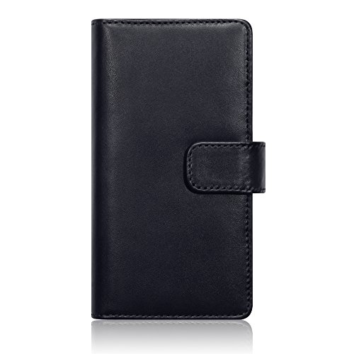 Custodia a portafoglio in vera pelle, per Sony Xperia Z3, con porta tessere, colore: Nero