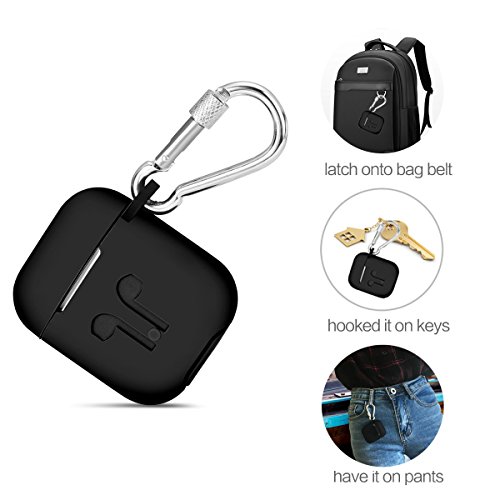 Custodia protettiva per AirPods, con cinghia e moschettone, in silicone, accessorio per AirPods Black-A