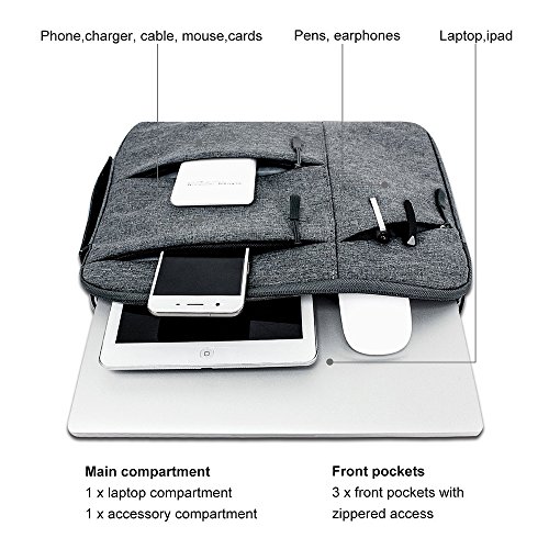 Archiviazione multi-tasca: uno scomparto principale per laptop, 3 tasche frontali con accesso con cerniera sono ideali per riporre piccoli oggetti come telefono, cavo, penne, carte, caricabatterie, mouse e altro.