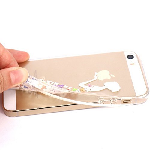 3H, custodia protettiva per iPhone 6 e 6S, elastica, trasparente, ad alta definizione, in silicone e in gel di poliuretano termoplastico, anti urto, PLASTICA, White Butterfly Girl, iPhone 5/5S/5SE