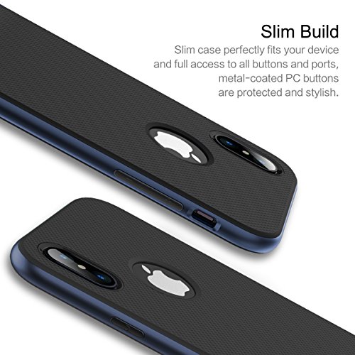 Custodia protettiva ROCK Royce Series, Ultra Premium Dual Layer Premium PC + TPU Copertura antiurto e senza impronte digitali per iPhone X ( Color: Navy Blue )