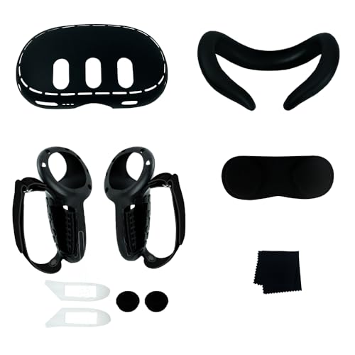 Custodia protettiva in silicone per Meta Quest 3, set da 10 pezzi per visore VR e copriobiettivo, cover per controller host, copertura protettiva per controller host, cuscinetto protettivo, accessori