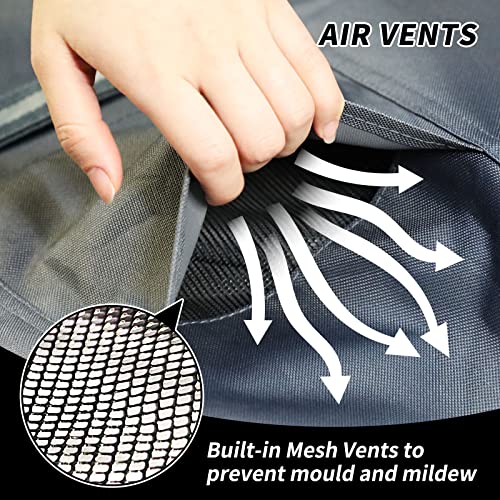 Antistrappo e protezione UV, tessuto Oxford e cuciture doppie con bordi rilegati offrono una protezione completa per questa copertura per mobili da crepe. Il design resistente ai raggi UV offre un'eccezionale durata alla luce solare, manterrà la sua intensità verde senza sbiadire o scolorire nel tempo