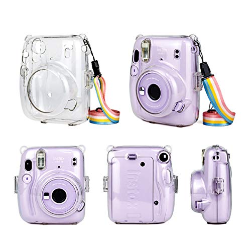 JXE Custodia protettiva trasparente per fotocamera in cristallo con tracolla regolabile arcobaleno compatibile con Fujifilm Instax Mini 11
