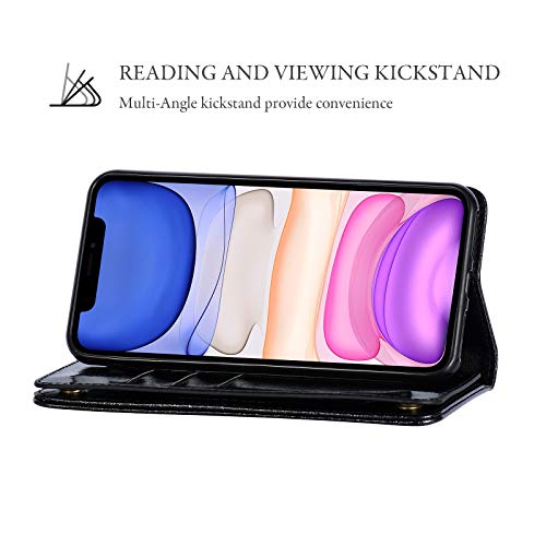 Custodia QLTYPRI per iPhone 11 Pro, Custodia a portafoglio glitterata con slot per carte di credito, cinturino da polso con chiusura magnetica per iPhone 11 Pro (5,8 pollici) - Nero