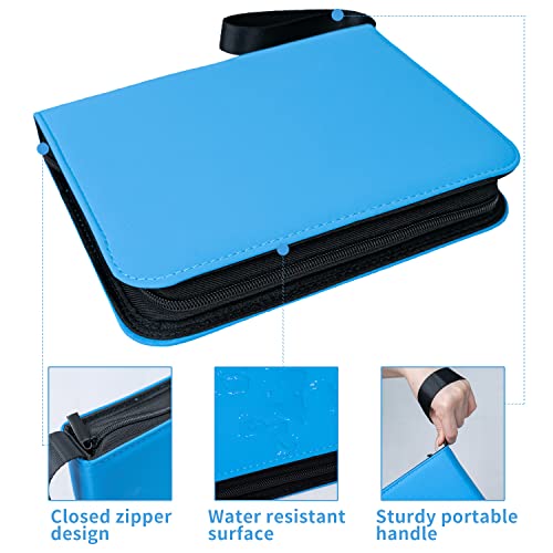 320 Custodia Raccoglitore per Carte Pokemon, 40 Pagine, Album Trasparente Impermeabile, Copertura in Pelle PU e Chiusura a Cerniera Lampo, Compatibile con Pokeman Trading Card/Yugioh Cards(blu)