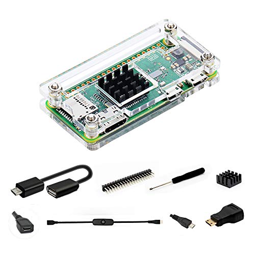 Custodia Raspberry Pi Zero 2, iUniker kit custodia con cavo interruttore MicroUSB, cavo OTG, dissipatore di calore, intestazione, adattatore HDMI per Zero 2w/ W/WH/ 1.3 (Clear)