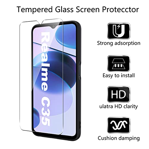 Custodia per Realme C35 Cover, Vetro Temperato Pellicola Protettiva Case Custodia Matte Sottile in TPU Morbido, Cover Protezione Anti-Caduta- Nero