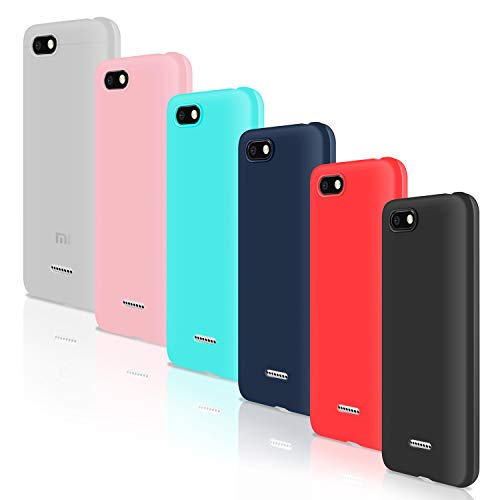 6 × Custodia Redmi 6A Cover Silicone, Leathlux Sottile Morbido TPU Custodie Protettivo Flessibile Gel Cover per Xiaomi Redmi 6A 5.45"(NO per Redmi 6/6 Pro) Rosa,Verde,Rosso,Blu scuro,Traslucido,Nero