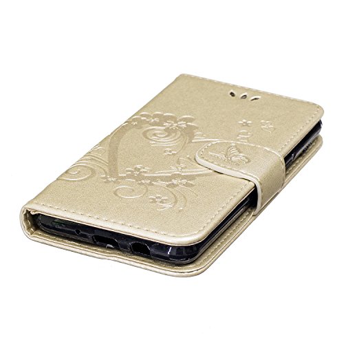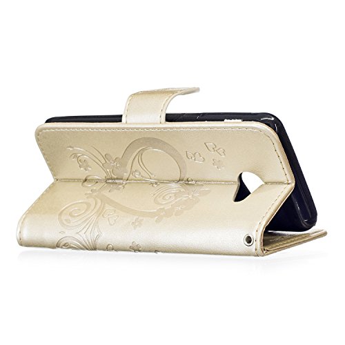 Custodia Samsung J5 2017, CXTcase Galaxy J5 2017 Custodia (US-Version) in Pelle Copertura Portafoglio Flip Book Cover Cinturino da Polso Magnetico Silicone TPU Case per Samsung Galaxy J5 (2017) Oro Farfalla