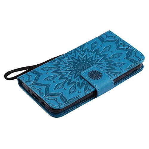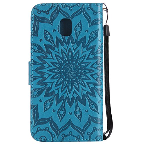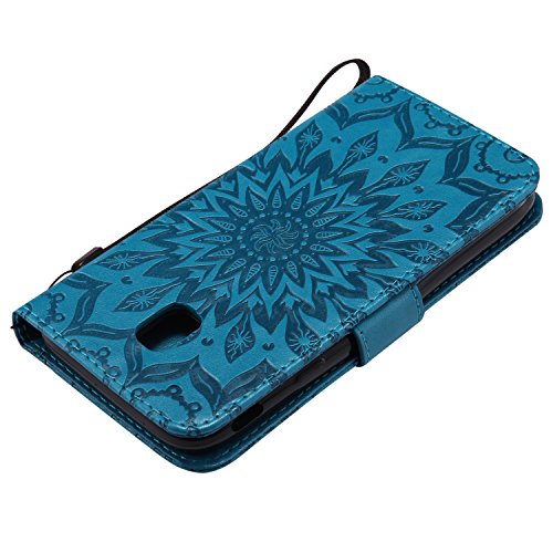 Custodia Samsung Galaxy J3 2017 Cover,SMYTU Custodia In Pelle Con rilievo Supporto di Stand Built-in Card Slot Cover Per Samsung Galaxy J330/J3 2017 Custodia Pelle(Blu)