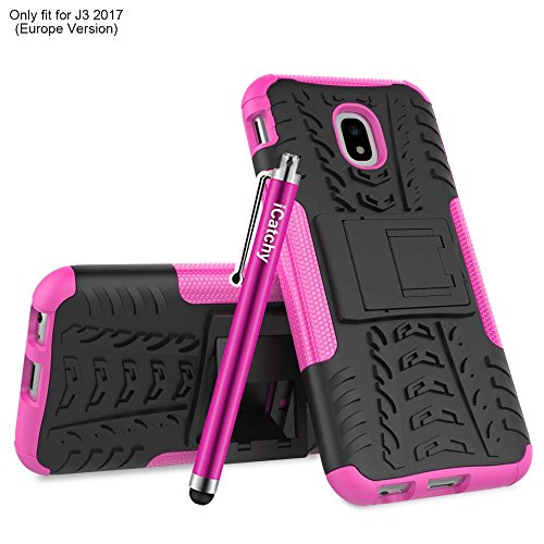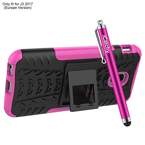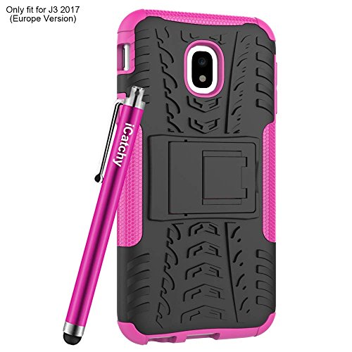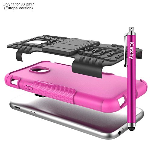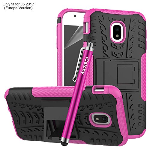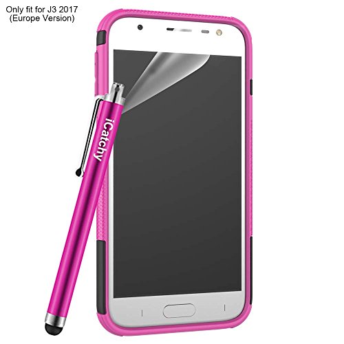 Custodia per Samsung Galaxy J3 2017, resistente, robusta e antiurto, include pellicola salvaschermo, panno in microfibra e stilo rosa Pink
