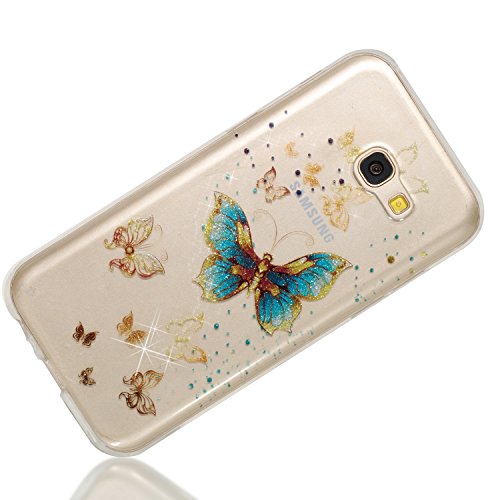 Custodia per Samsung Galaxy A5 2017, sottile e di lusso con glitter luccicanti, design con farfalla blu oro rosa antiurto trasparente e morbido silicone TPU per Samsung Galaxy A5 2017