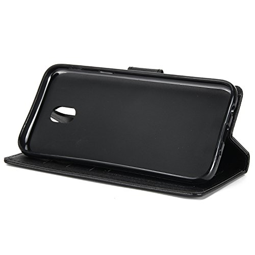 Custodia Samsung Galaxy J3 2017 Wallet Cover -MOONESS Retro Portafoglio Con Cinturino da Magnetico Slot Schede Internamente Silicone TPU Custodia Flip PU Supporto (Nero)