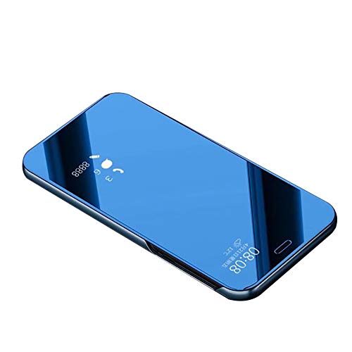 Custodia Samsung Galaxy A6 2018 Specchio Portafoglio Libro Trasparente Cover Flip Pelle Verticale Pieghevole Rigida Electroplate Antiscivolo AntiGraffio Guscio con Supporto per Samsung Galaxy A6-Blu