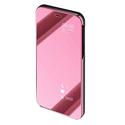 Custodia Samsung Galaxy A6 2018 Specchio Portafoglio Libro Trasparente Cover Flip Pelle Verticale Pieghevole Rigida Electroplate Antiscivolo Antigraffio Guscio con Supporto Per Galaxy A6 2018-Oro rosa
