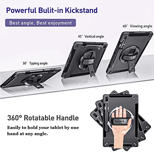 Custodia per Samsung Galaxy Tab S7 FE 2021: robusta custodia antiurto a 3 strati di qualità militare per Tab S7 Plus da 12,4 pollici con supporto girevole - S Pen - cinghia da polso - Nero