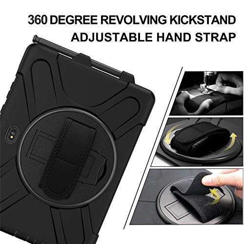 Custodia per Samsung Galaxy Tab Active PRO 10,1 Pollici (SM-T540/T545/T547) 2019, Rugged Custodia Protettiva Antiurto con Cavalletto Rotante/Mano/Tracolla/Portamatite,Black