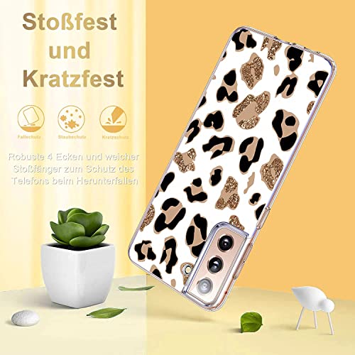 Custodia per Samsung Galaxy S21 FE 5G Cover Silicone Soft TPU Galaxy S21 FE Leopardo Ultra Sottile Thin S21 FE 5G Slim Case Transparente Animale Smartphone Case per Samsung S21 FE 5G Handy 6,4" (Oro)