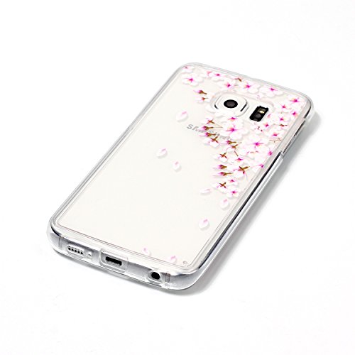 Custodia Samsung Galaxy S6 Edge,Samsung Galaxy S6 Edge Cover, Felfy Samsung Galaxy S6 Edge Cover Custodia Unico Trasparente Clear TPU Gel Silicone Morbido Leggero Ultra Sottile Copertura del Paraurti di Protezione Antipolvere Custodia Bumper Cover Divertenti Fiore della Pesca Design con Gratuito Proteggi Schermo e Rosa Stilo Penna