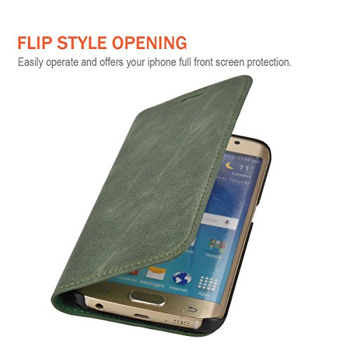 Custodia Samsung Galaxy S6 Edge, Cover Samsung Galaxy S6 Edge, Mulbess [Portafoglio Protettiva] Custodia In Pelle Con Supporto Per Samsung Galaxy S6 Edge Custodia Pelle, Verde