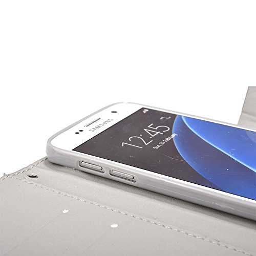 Custodia Per Samsung Galaxy S7 Edge,Funyye Pelle Portafoglio Flip Libro Cover con Glitter Brillanti Strass Protettiva Casa Copertura Chiusura Magnetica Supporto Stand Porta Carte Originale Brillare Shine Diamante Wallet Case Per Samsung Galaxy S7 Edge - Argento