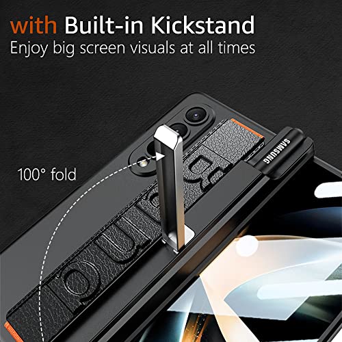 Custodia per Samsung Galaxy Z Fold 4 Protettiva con Cerniera Magnetica con Cinturino e S Pen Slot, Cover per Cinturino Antiurto per PC di Lusso con Pellicola Protettiva per Z Fold 4(Senza Pen),Nero