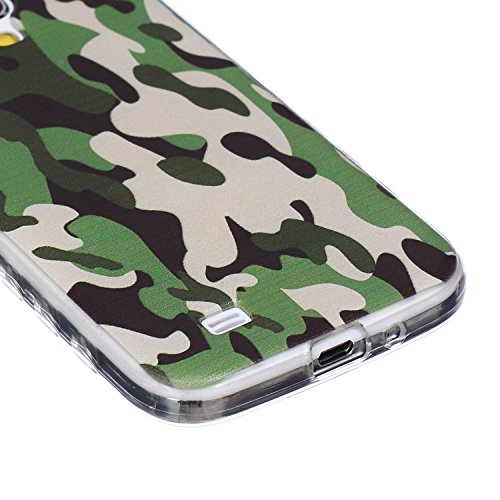 Custodia per Samsung Galaxy S4,Funyye Morbida Protettiva Caso TPU Sottile Silicone Gel Chiaro Copertura Slim Bumper Thin Shell Samsung Galaxy S4 i9500 Trasparente Cover Soft Skin -Camouflage Verde