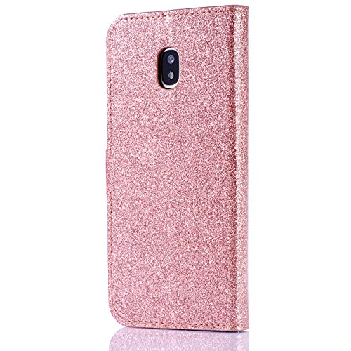 Custodia per Samsung Galaxy J730/J7 2017 Cover in Pelle Portafoglio, Funyye Lusso Eleganza [Diamante Perla] Design Incorporare Affascinante Flip Wallet Case Bello Scintillante PU Leather Shell Skin Bumper + 1 x Con Gratis Pellicola Protettiva per Samsung Galaxy J730/J7 2017 - #1 Oro Rosa