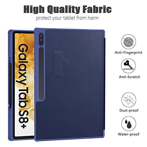 Custodia per Samsung Galaxy Tab S8 Plus 2022 / S7 FE 2021 / S7 Plus 2020 12,4 pollici, Cover posteriore in pelle PU Premium e TPU morbido, Sveglia/Sonno automatico con supporto per penna S