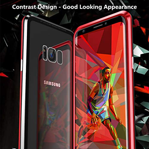 Custodia per Samsung Galaxy S8 Plus Adsorbimento Magnetico Tech Protezione 360 Gradi Flip Cover Doppio Tattile Vetro Temperato Telaio Alluminio Forte Magnete Antiurto Metallo Cassa