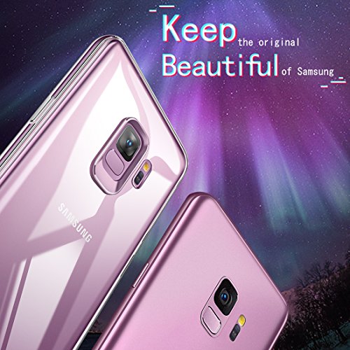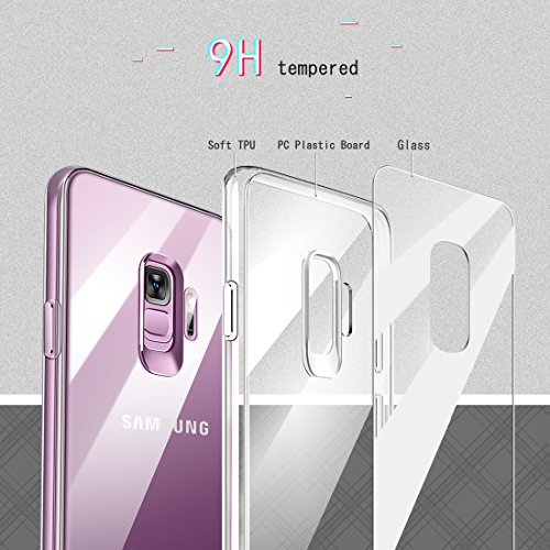 Custodia per Samsung Galaxy S9, serie Crystal trasparente, vetro temperato 9H, retro e silicone TPU, lato morbido.