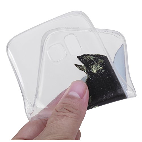 Custodia per Samsung Galaxy S7, SKYXD Telefono Cover Sottile Morbido Trasparente Silicone Gel TPU Colorata Antiurto Protettiva Custodia Cellulare per Samsung Galaxy S7 con Glitter Spina Della Polvere e Stylus Touch Penna (Faccia laterale Gatto nero)