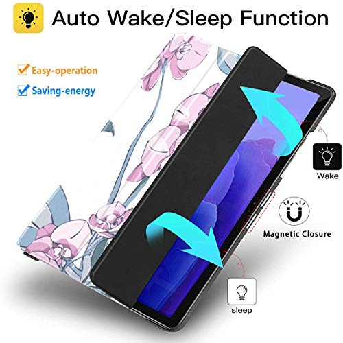 Custodia per Samsung Galaxy Tab A7 Tablet da 10,4 pollici 2020 (sm-t500 / t505 / t507), copertura del supporto ad angolazione multipla motivo orchidea con attivazione/sospensione automatica