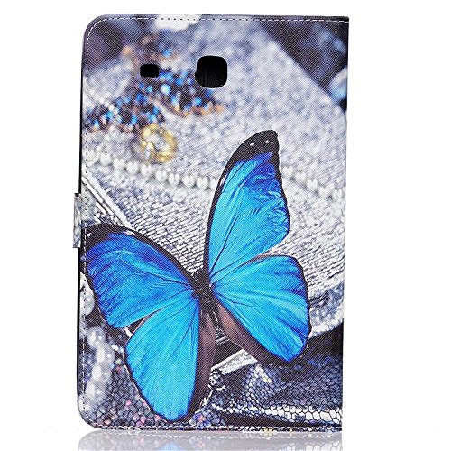 Custodia per Samsung Galaxy Tab E 9.6'',Ultra Slim Custodia Cover per 9.6'' Samsung Galaxy Tab E 9.6 T560 Custodia in Pelle Book Style con Supporto + pellicola protettiva + Pennino,Farfalla blu