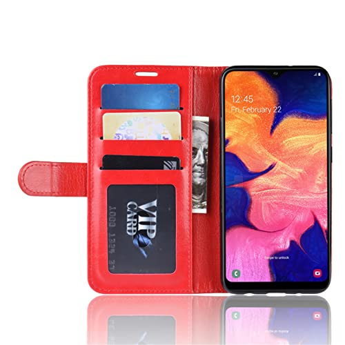 Custodia per Samsung A10 PU Pelle Wallet Protettivo Cellulare Flip Cover per Samsung Galaxy A10 A 10 A105F a Portafoglio Telefono con Magnetica (Rosso)