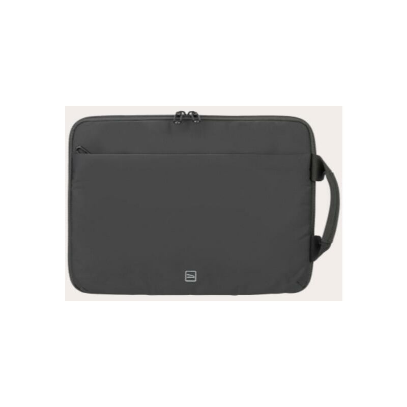 Custodia protettiva per Laptop 14'' e MacBook Pro 14”. La cerniera, presente su tre lati, permette di aprire completamente la custodia utilizzandola anche come base di lavoro, fissando le estremità del device con due elastici angolari.