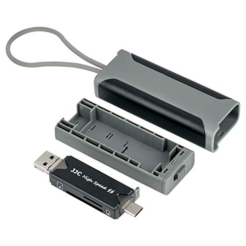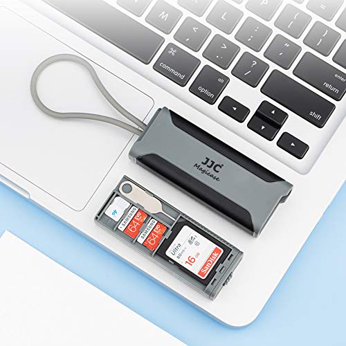 JJC Set di custodia per scheda di memoria da viaggio con lettore di schede USB 3.0 e strumento di rimozione della scheda in slot per SD x1 + TF/MSD x2 + Nano SIM x1, custodia per il schede SD - grigio