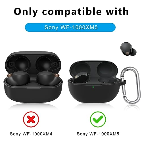 Custodia in Silicone per 2023 Sony Wf-1000xm5, Custodia Protettiva Antiurto Anti-Perdita per Wf-1000xm5, Con Portachiavi E Penna Di Pulizia (Nero)