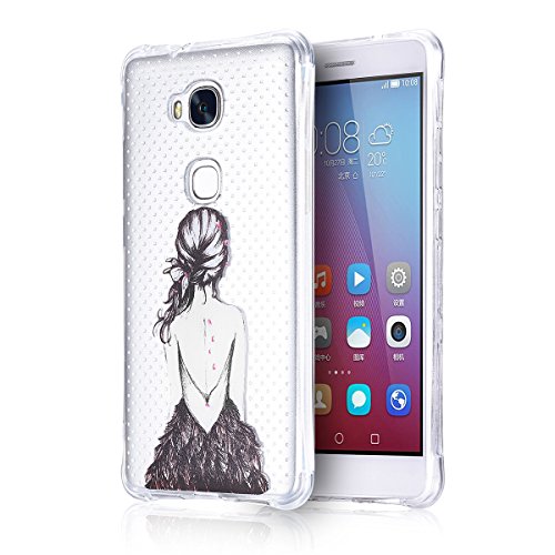 Custodia in Silicone per Honor 5X, Fukalu Cassa del Respingente del Silicone Sottile Custodia Molle di TPU Fiore Modello Morbidi Cuscini Trasparente Antiurto Cover per Honor 5X (Ragazza Indietro)