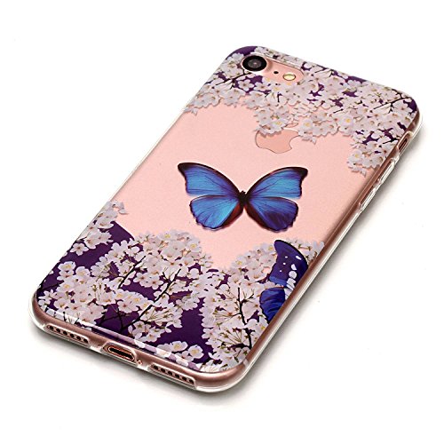 Custodia in silicone per iPhone 7 Plus, custodia Leeook di gomma per iPhone 7 Plus, sottile e bellissima, con motivi blu a fiori mandala, morbida, in silicone, anti-graffio, trasparente, flessibile e ultrasottile, cover in poliuretano termoplastico per iPhone 7 Plus da 4,7 pollici con 1 fiore mandala nero e blu