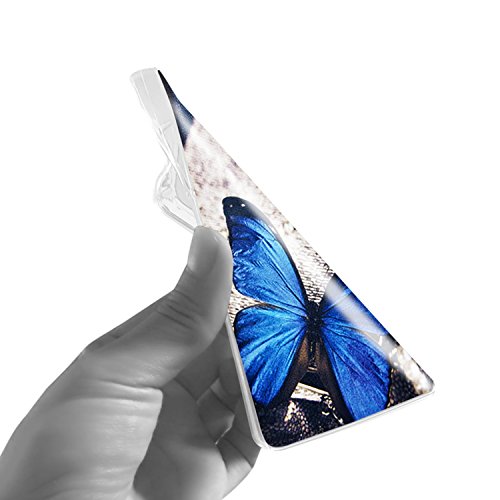 Custodia in Silicone per Wiko Fever 4G, Fukalu Cassa del Respingente del Silicone Sottile Custodia Molle di TPU Fiore Modello Trasparente Cover per Wiko Fever 4G 5.2" (Farfalla Blu)