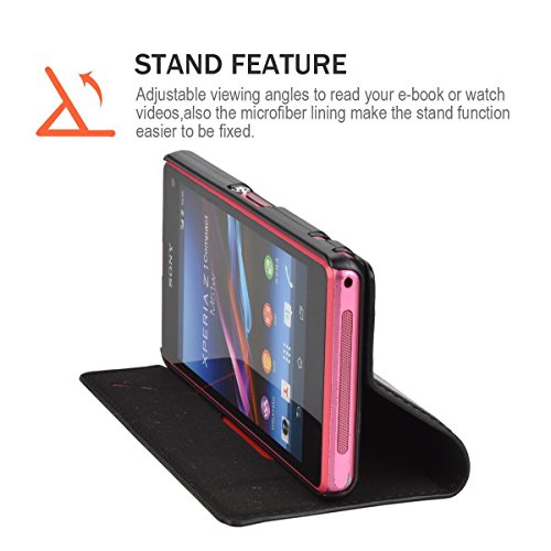 Custodia Sony Xperia Z1 Compact, Cover Sony Xperia Z1 Compact, Mulbess [Portafoglio Protettiva] Custodia In Pelle Con Supporto Per Sony Xperia Z1 Compact Custodia Pelle, Nero
